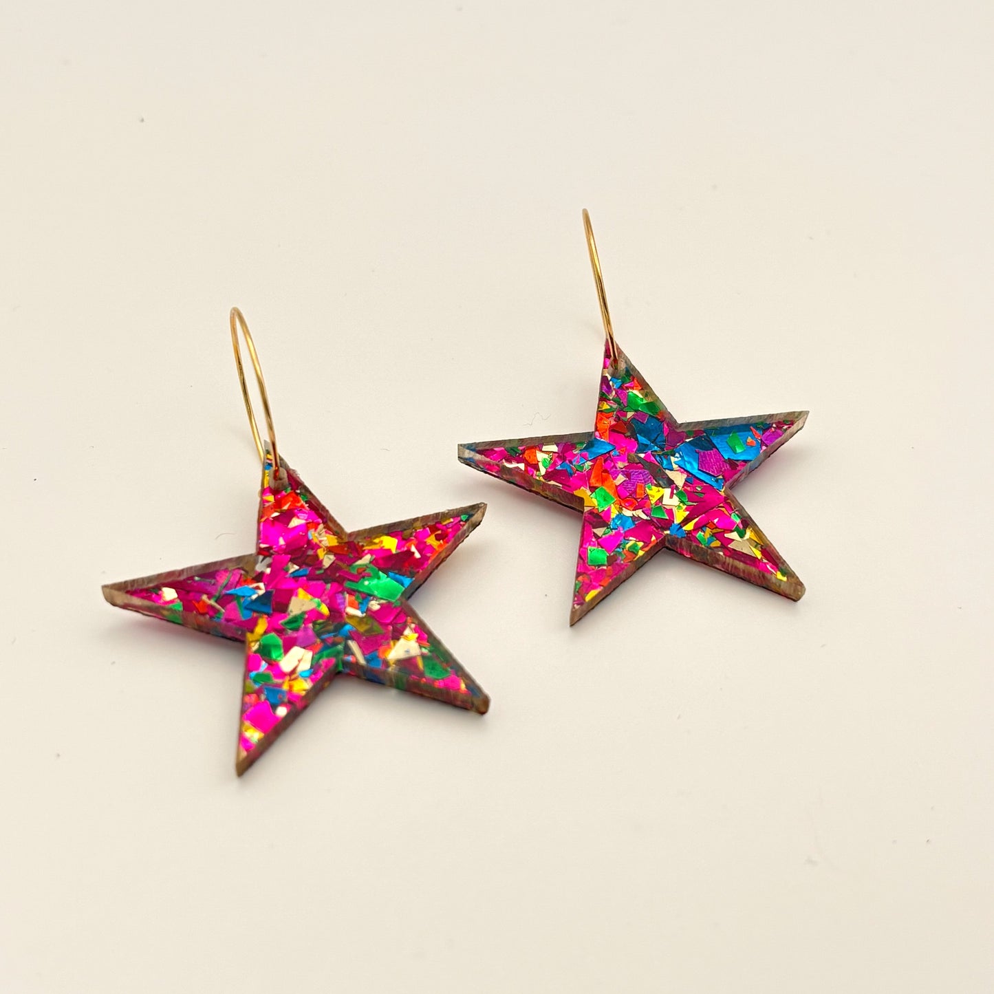 ✨ Pendientes de Estrella en Acrílico Purpurina Confeti ✨