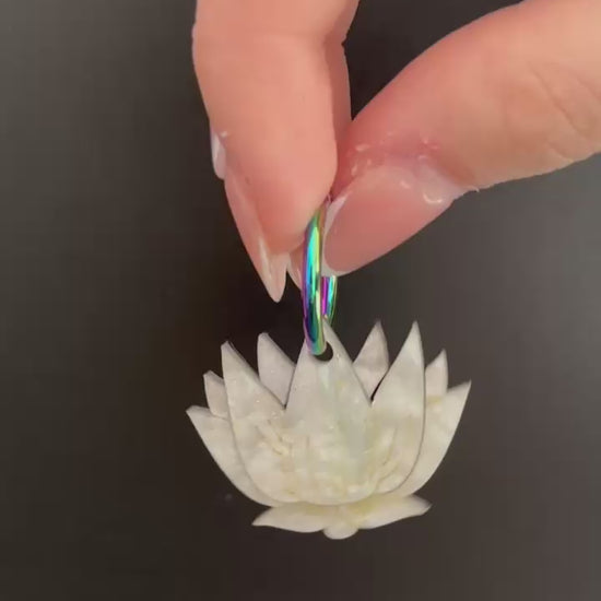 Estos pendientes de flor de loto en acrílico efecto mármol son el complemento perfecto para quienes buscan accesorios originales, ligeros y con un simbolismo especial.