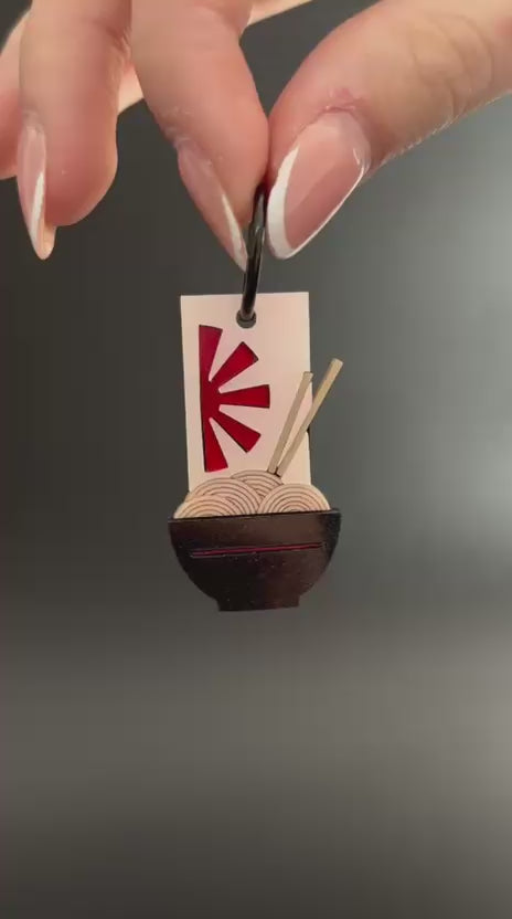 🍜 Pendientes Bowl de Ramen con Banderola Sol Naciente en Acrílico Irisado